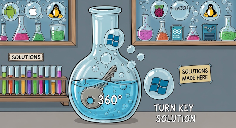Our custom software supports a wide range of platforms, including Microsoft Windows, MacOS, iOS, Android, Linux (Multiple distributions), Embedded (Raspberry Pi, Arduino), and even FreeBSD, allowing for the creation of native cross-platform applications.